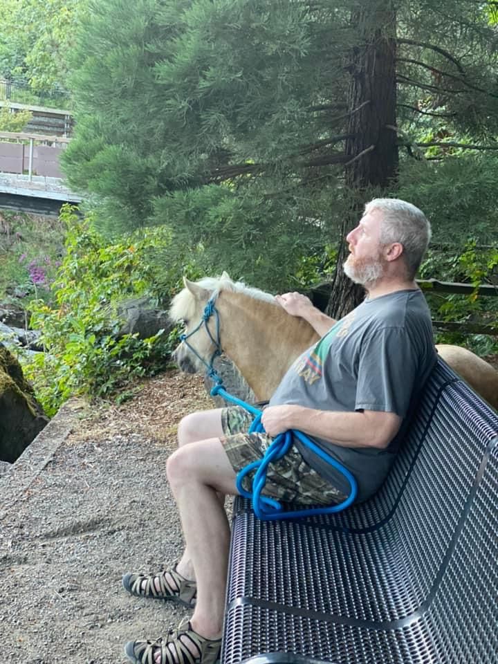 I love visiting Bolender Horse Park, practicing Mountain Trail, and visiting my friends! Snuggles with dad.